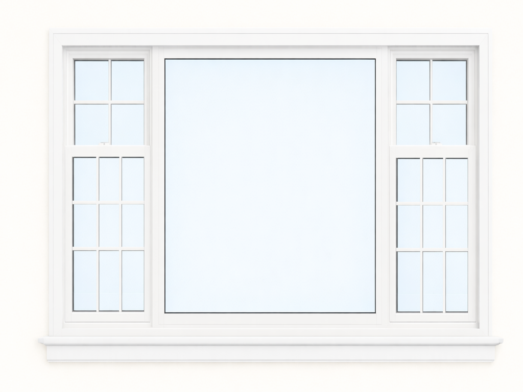 A picture window with flankers features a large, fixed-pane center window designed for unobstructed views, paired with operable side windows (flankers) that provide additional natural light and ventilation.